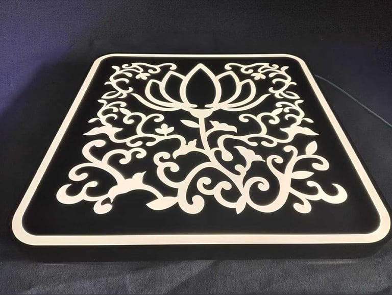 This light box features a stainless steel hollow-carved main body with an acrylic panel inlaid at the carved section, allowing the built-in LED strip light to emit a soft glow through the engravings. The stainless steel material exudes an upscale and elegant look, making it perfect for restaurants, bars, cafes, and more.